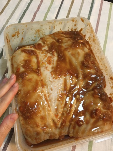 豚肩ブロック肉2.5キロ。これを味噌や醤油、パパイヤ(酵素で肉が柔らかになる)、リンゴ酢など、思いついたもので適当にマリネする。生姜やリンゴのすりおろし、玉ねぎのすりおろしを入れたりするのもいいが、今日のところはシンプルに。