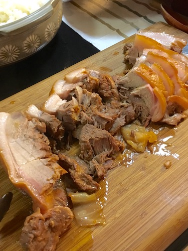 会合は火曜日。月曜日はポークショップは休みなので、土曜に購入し、その日から2、3日、漬け込んでおいた。そのせいか、なかなかに味が染み込んでいる。