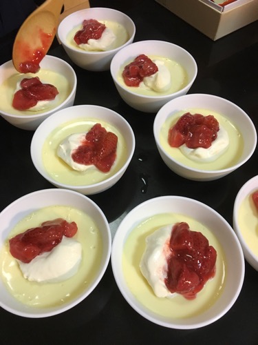デザートもやはりリクエストにお応えしてのカスタードプリン。しかしリクエストしていた人が、風邪を引いて欠席。体調の悪い人に食べて欲しい滋養たっぷりの食事だっただけに、残念だ。