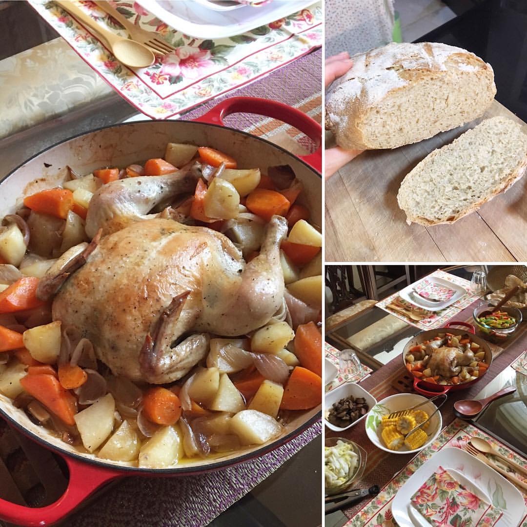 先日のランチもまた、ゲスト向けに丸鶏のグリルを。そして捏ねないパン、今回はATTA(全粒小麦粉)を使用。やや膨らみが浅いけれど、あっさりヘルシーにつき、グリルの肉汁をつけて食べるのに好適。