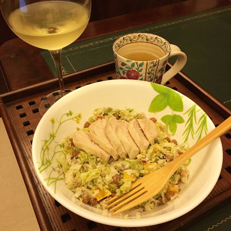 こんなときに便利なのは、オーガニックショップのHappyHealthyMeの日替わりサラダ。普段は二人で分ける量も、サラダがメインなら一人で食べつくせる。が、サラダだけでは物足りないので、チキン&チキンスープを。
