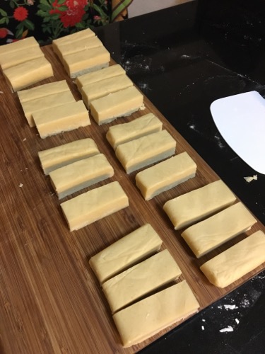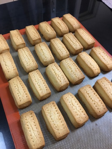 ショートブレッドの生地は前夜に作っておき、冷蔵庫で寝かせておいたものを、当日に、焼いた。