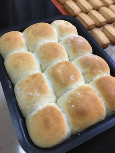 焼きたての、味見をすればふんわりとおいしくて、自宅用のパンだけれど、作業をしているメンバーにも「味見する?」と、ちぎっては渡し、ちぎっては渡し……。
