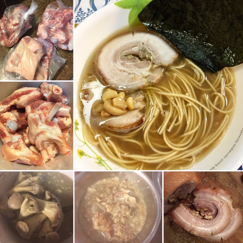 先日、近所のポークショップを訪れたら、スープ用の豚の骨が売られていた。試しに購入し、スロークッカーで10時間以上煮込んだ後、味付け。オーストラリア産のオーガニックラーメン麺を茹で、昨夜の豚のグリルの残りをチャーシューの代わりに。にんにくのオリーヴオイル煮と海苔を添えて完成。実験結果は、まずまず。少しコクが足りなかったが、十分に「とんこつ気分」を味わえた。