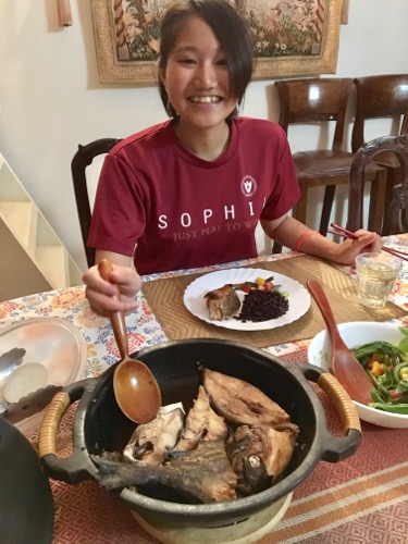 3泊4日、拙宅にホームステイしていた女子大生、杜さん。バスケ部体育会系だけあり、食欲も旺盛。夫不在で二人の食卓なのに、どう考えても多すぎる料理。まあ、翌日のランチにするのでノープロブレムなのだ。