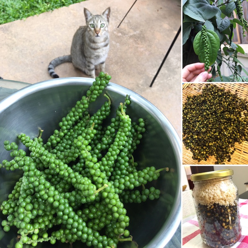 庭の胡椒の実が豊作。3割ほどを収穫して、塩漬けを作った。本当は塩水に浸すのだが、今回はオーガニックの海塩を上に載せてみた。レモン汁に浸してもいいらしい。いろいろと、実験中。パスタやサラダに和えてもおいしいし、和食にもよく合う。辛いだけではない、旨味の詰まった調味料なのだ。