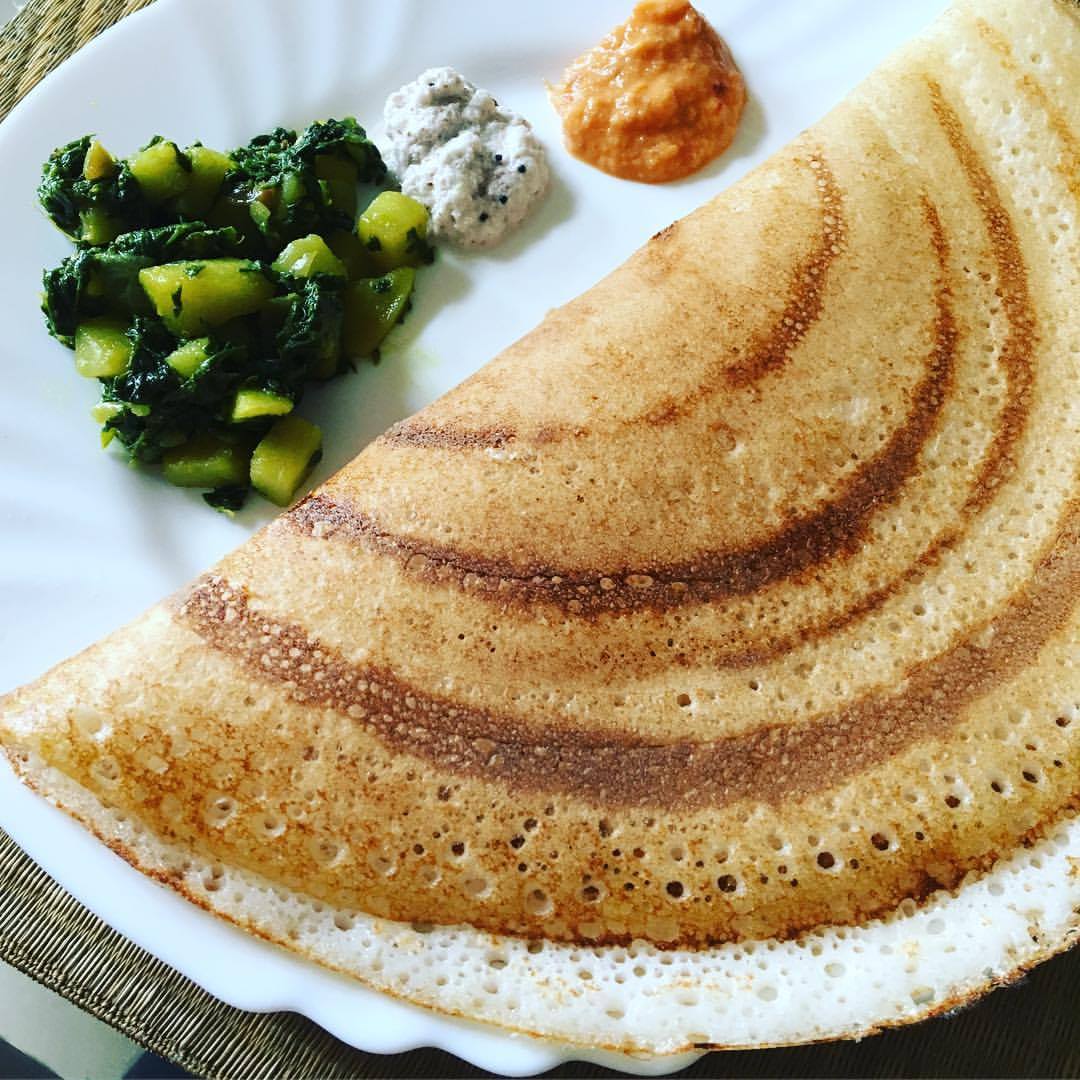 油脂を控えめに、薄くて香ばしいドサ。そして彼女が自宅で作ってきてくれたチャトゥネ。これがとてもおいしい!