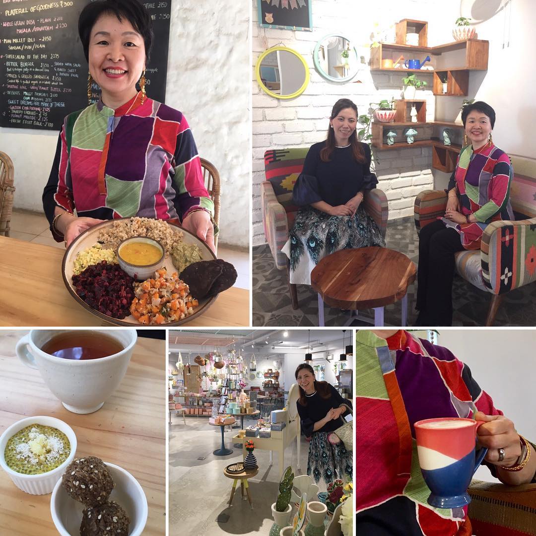 バンガロール来訪中のハルヨさんと久しぶりに再会。毎度お気に入りのオーガニックショップでヘルシーなヴェジタリアン・ランチを楽しむ。ミールス(定食)は、野菜、ココナツや豆類、雑穀などをふんだんに使った南インド料理。デザートも、キノアなどのスーパーフードを使った超ヘルシー、甘さ控えめのもの。むしろ砂糖を追加したい衝動に駆られるほど上品なお味。