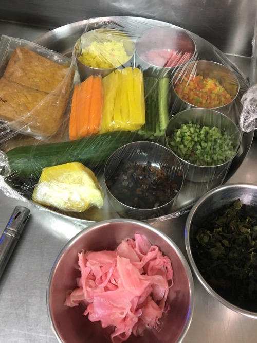 この日、ともに料理をしてくれたのは、オリエンタル料理担当のシェフ。彼は日本料理が作れるフィリピン人シェフから巻き寿司などの日本料理を学んだらしい。これはその材料だ。