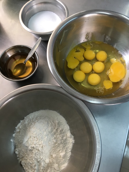 生地を作るまではいつもの通り、問題なく進むが、肝心なオーヴンの火加減がわからない。業務用の大きいもので、普段使うものと温度調整の塩梅が異なる。が、試してみることに。