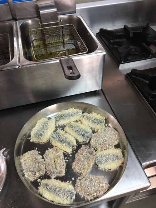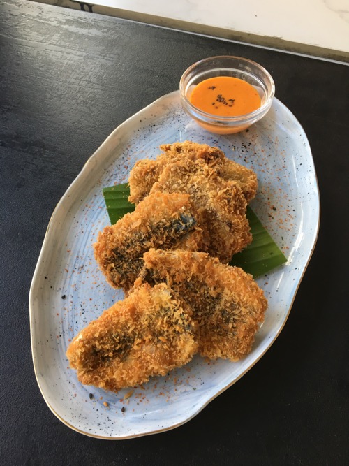 イワシのフライ&シェフによるソース添え。