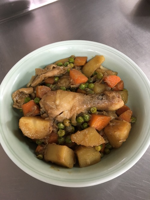鶏じゃが。うっかり、加熱しすぎたが、ノープロブレム。これは、ぎりぎりで自分がおいしいと思える味を死守。