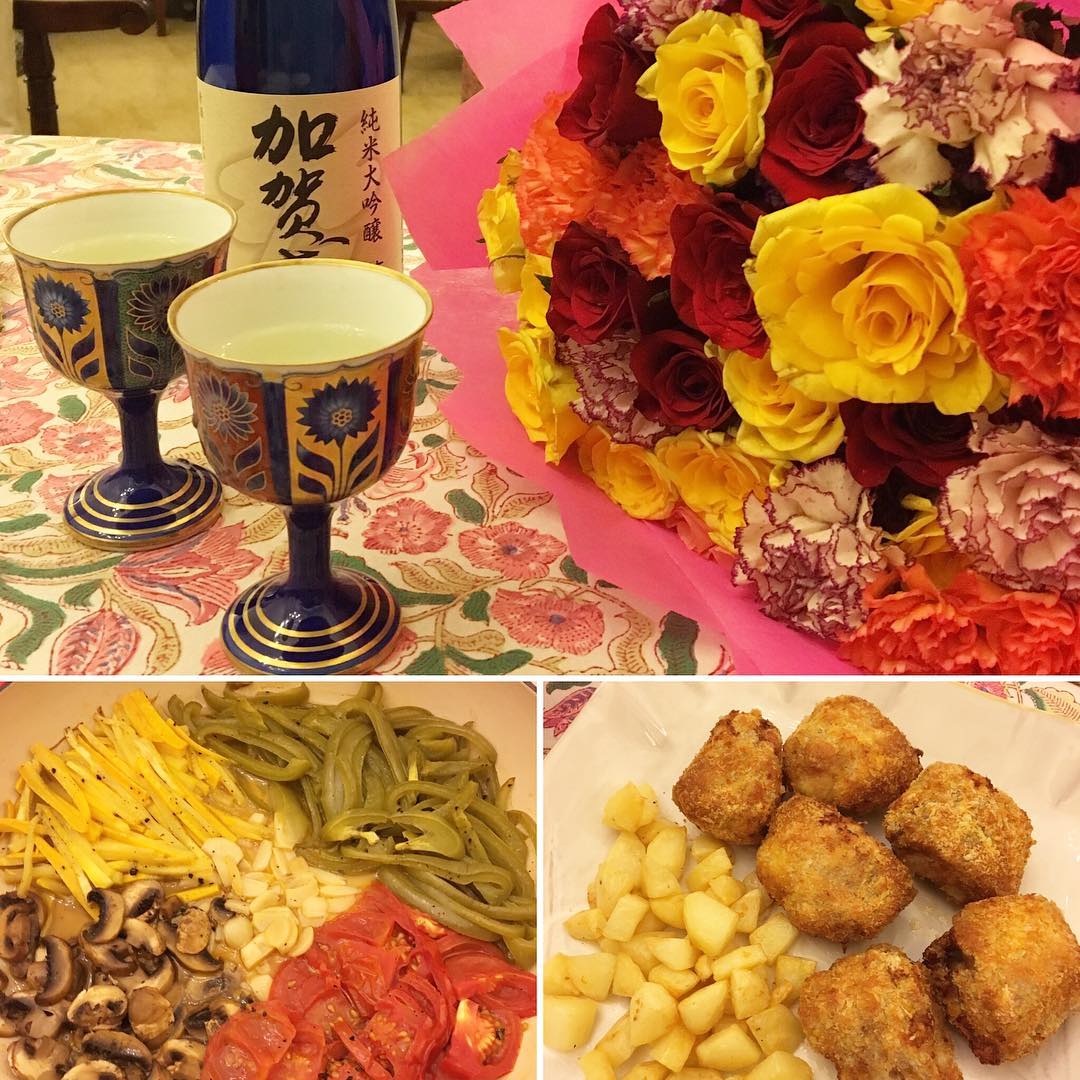 夫はムンバイ出張から夕刻、花束を携えて戻ってきた。そして明日は、早朝発の便で、二人して旅にでる。ゆえに、ロマンティックなヴァレンタインズ・ディナーに出かける状況ではなく。