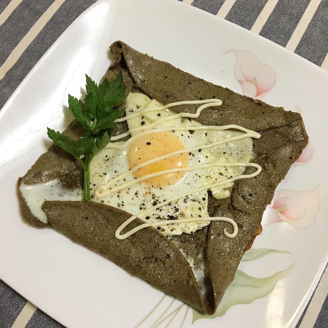 家にオーガニックのそば粉(buckwheat flour)があったので、先日のピザ用チーズと卵とでガレットを作った。