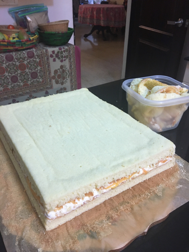 ゆえに、バターを使わないロールケーキのスポンジを2台焼いておいた。