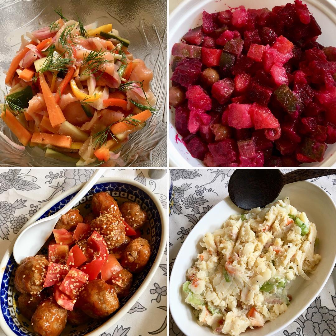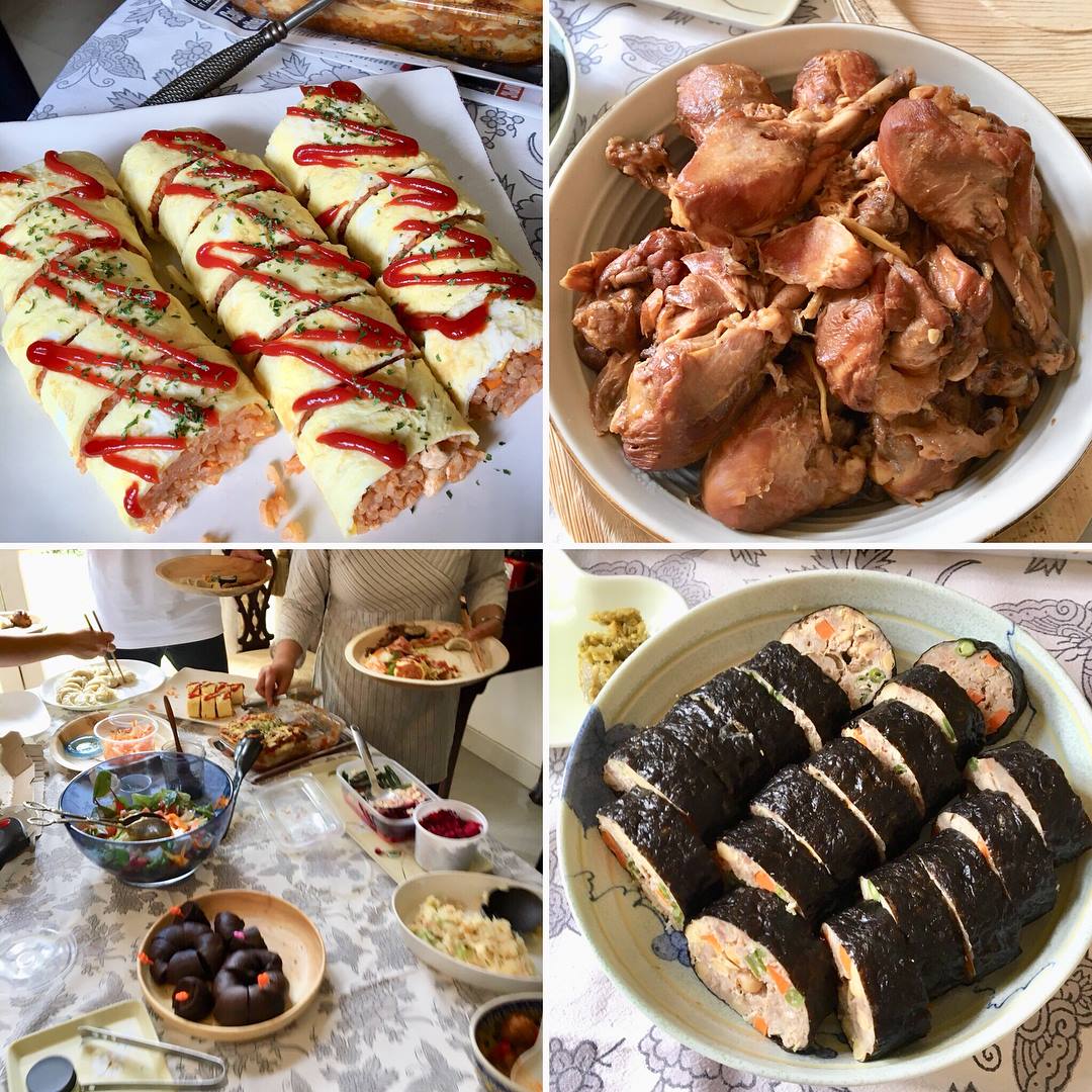 いつものように、参加者が料理を持ち寄るポットラック形式で、テーブルはにぎやかに彩られた。デザートなど、うっかり何枚かの写真を撮り損ねてしまったが、このほかにもまだ、おいしい料理がたくさん持ち寄られたのだった。