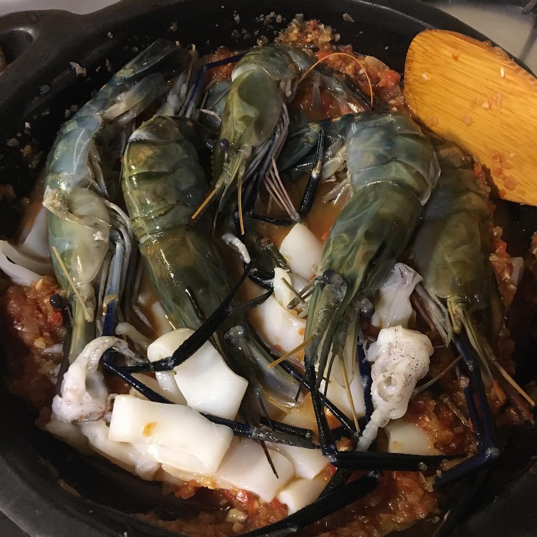 Scampi and squid from freshtohome.com. The tomato Source was enriched by them. Yummy!