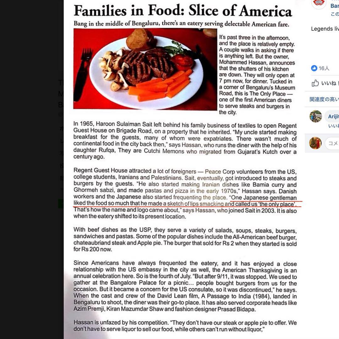 記事の中に、面白い一文を発見した。当時、この店の常連客に、日本人男性がいたという。彼がある日、紙切れに唇💋の絵を描き、このダイニングのことを”The Only Place” (唯一の場所)と呼んだことから、この店名とロゴになったのだという。