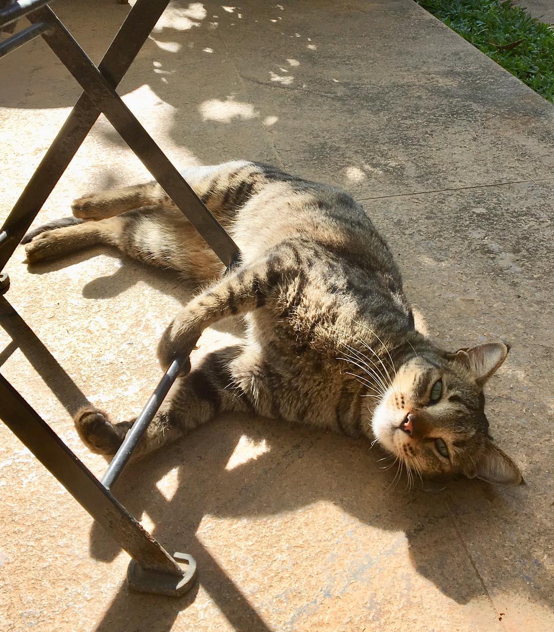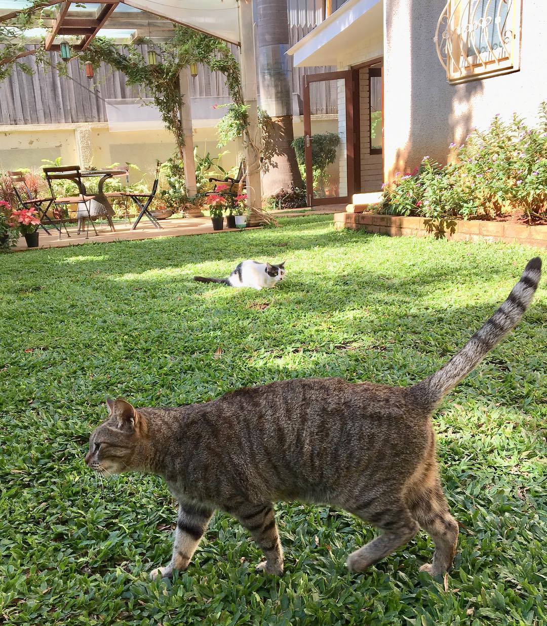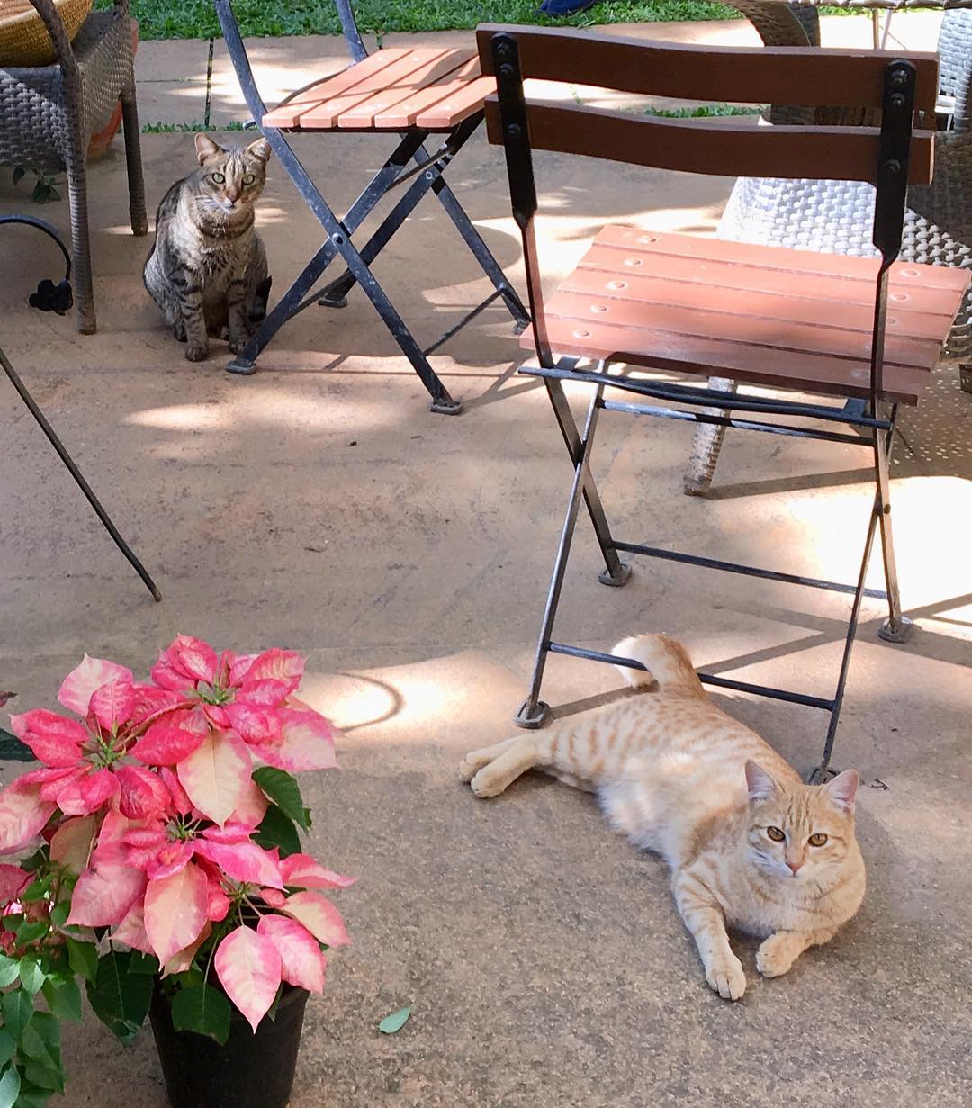 留守中、猫らの面倒を見てくれているドライヴァーのアンソニーによると、我々の不在中、彼らはだいぶ不機嫌で、喧嘩が絶えないようだったが、わたしたちが戻ったら、無愛想ではあるものの、少しうれしそうに見える。