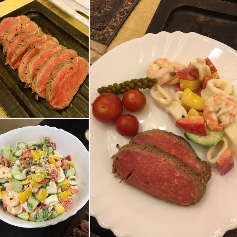 🍷セミナー後のつまみや食事も、毎度多めに作るのに、これまたあっという間になくなってしまう。食事に参加できない人が3名いたというのに、ほとんど残らず。昨日は、シーフードサラダやローストビーフ、いつものトウモロコシやブロッコリーなどの野菜類も準備した。バンガロール・ビーフで作ったローストビーフ、低温調理がうまくいって、実に柔らかく、おいしくできた。ただ塩コショウだけで、十分においしい。
