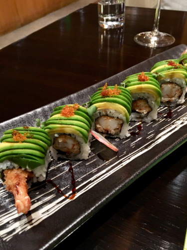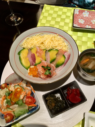 最近「丼メニュー」を始めたとのことで、海鮮丼を頼んでみた。これがまた、なかなかにおいしい! 海鮮サラダも、器代わりの香ばしい「海苔のフライ」が、いい味出している。ここのドラゴンロールは、巻かれているエビフライが、どっしりとした存在感を放っており、衣の香ばしさが効いていて、とても好きな味。