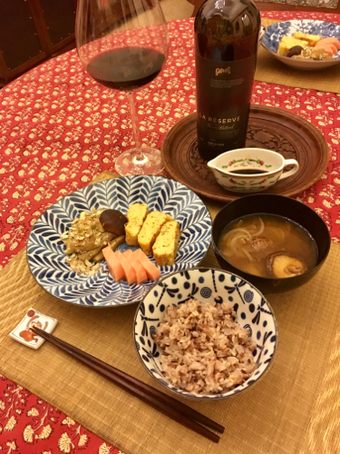日本米に、Happy Healthy Meで買っておいたレインボーライス、という名の四穀米をブレンドして炊くことにした。それだけで、見た目、華やかだ。