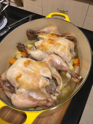 宴に便利な料理といえば、我が家では丸鶏のグリル。