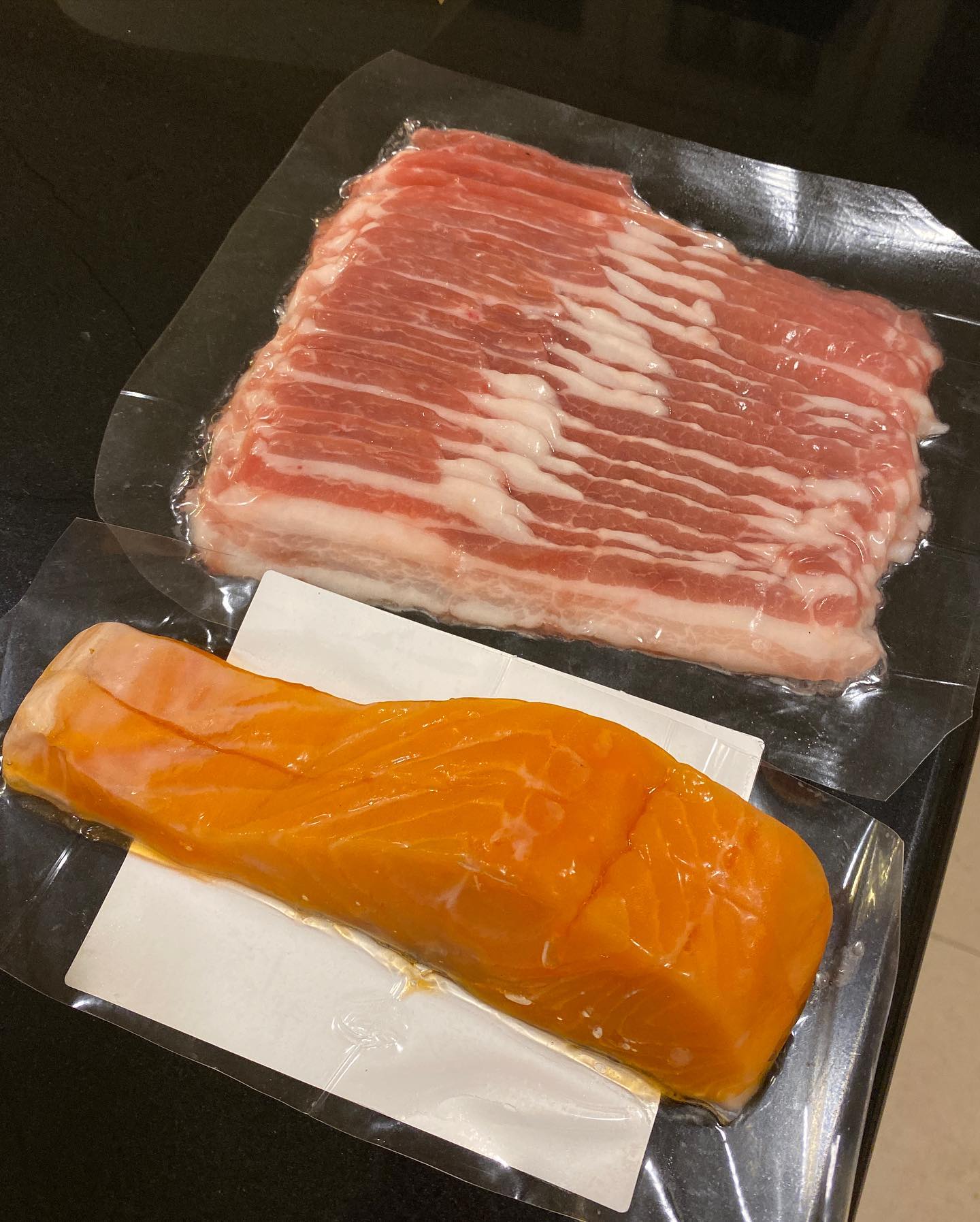普段は、FreshtoHome.comで魚介類を注文しているが、数カ月前に発見した輸入食材も扱うMIETIGO.COMもたまに使っている。高品質だが、近所の肉屋やFreshtoHome.comよりかなり割高。特に食べたいものがないとき以外は頼まないのだが、今朝、奮発して輸入物のサーモンと薄切り豚肉を頼んでみた。