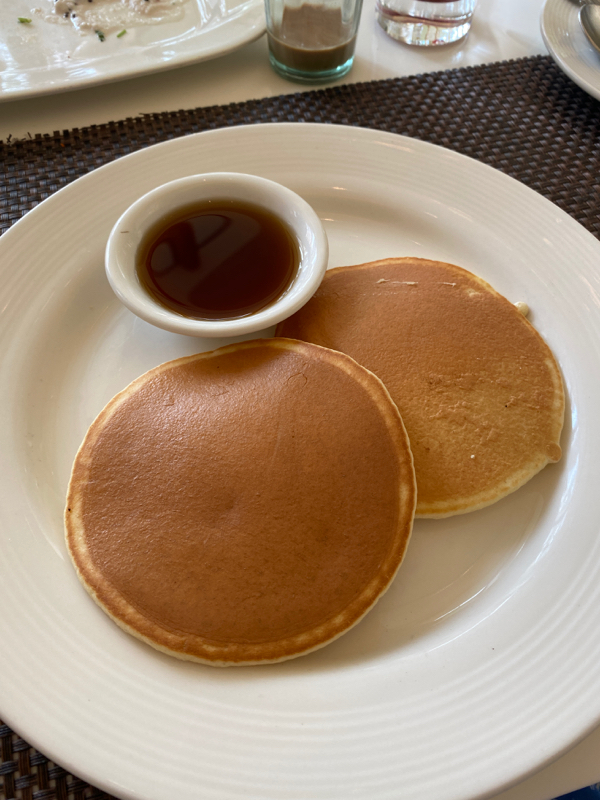 このパンケーキがね〜。コーヒーとよく合っておいしいのだ。メイプルシロップも美味であった。