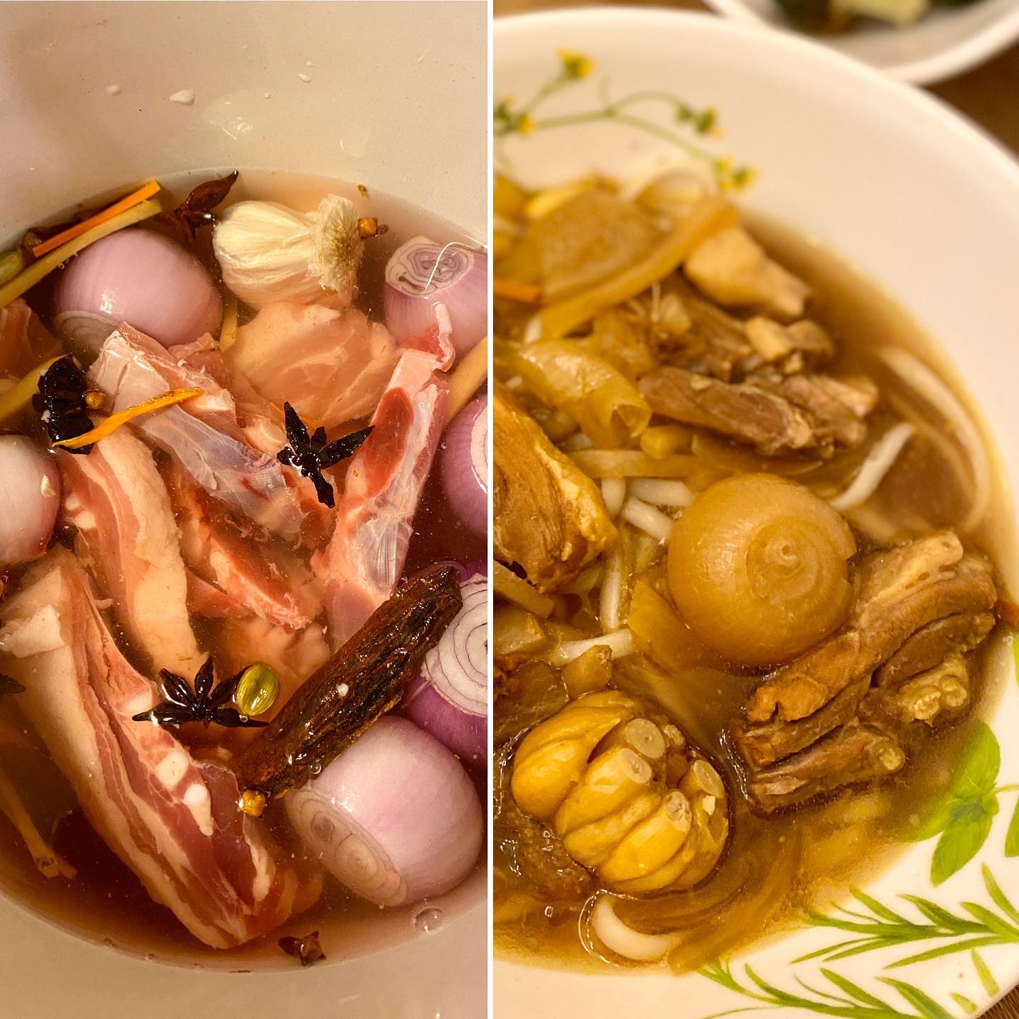 🐖ポーク・スペアリブは、毎度おなじみ「我流の肉骨茶(パクテー)」。八角(スターアニス)をはじめ、ニンニク、シナモン、クローヴなどを適当に入れ、やはりスロークッカーで。あとは醤油などで適当に味を整え(わたしはバルサミコ酢も入れる)、できあがり。やはりDaily Needsで買っておいた讃岐うどんの乾麺を茹でて、「邪道うどん肉骨茶」だ。