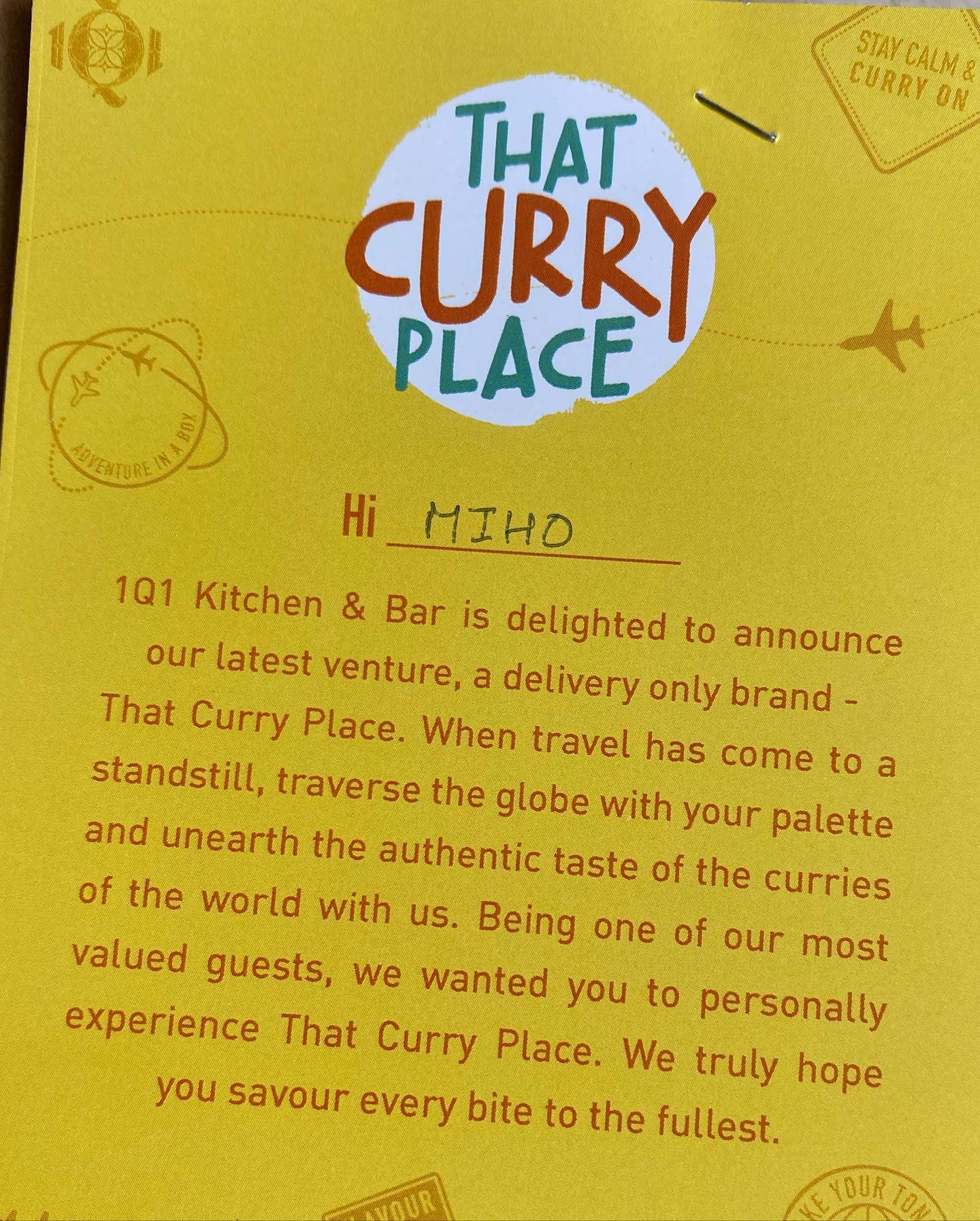 1Q1のオーナーと打ち合わせたい件があったので、先ほど電話をし、料理の感想も伝えた。インハウスのスタッフによる配達につき、できればご近所さんなどと声をかけあって「カレーランチ・デー」を設けてもらえればありがたいとのことだ。とはいえ1人分からでも届けてくれる。ぜひお試しあれ!