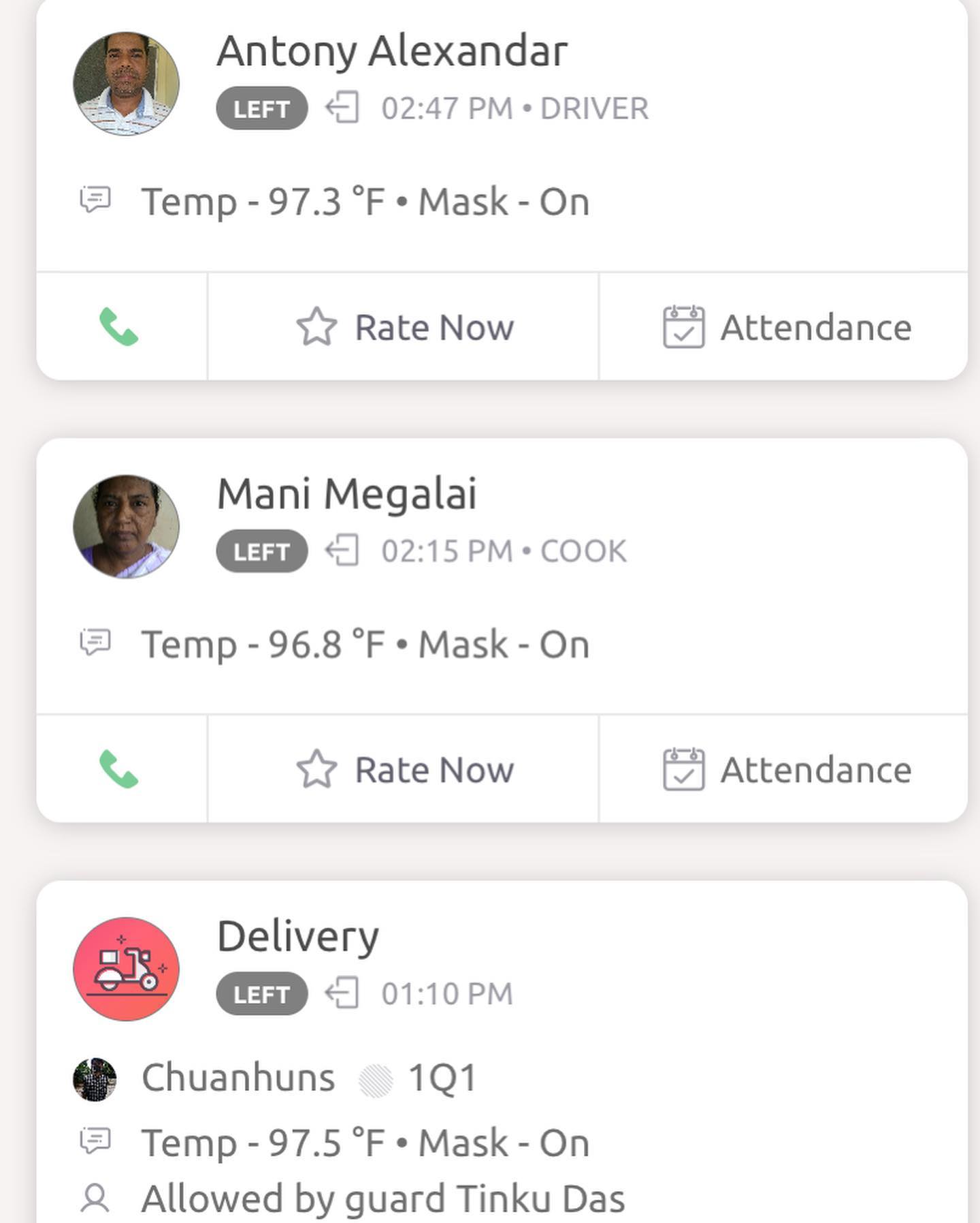 ちなみに昨今のバンガロール、いろいろな現場で、体温チェックはすでに「デフォルト」となっている。アパートメント・ビルディングのセキュリティとのやりとりに使用される「MyGate」というアプリは、2年ほど前から我がコミュニティでも使われているが、来訪者すべての履歴に「体温」までも表示されるようになった。こういうシステムの構築の速さには、本当に目を見張る。