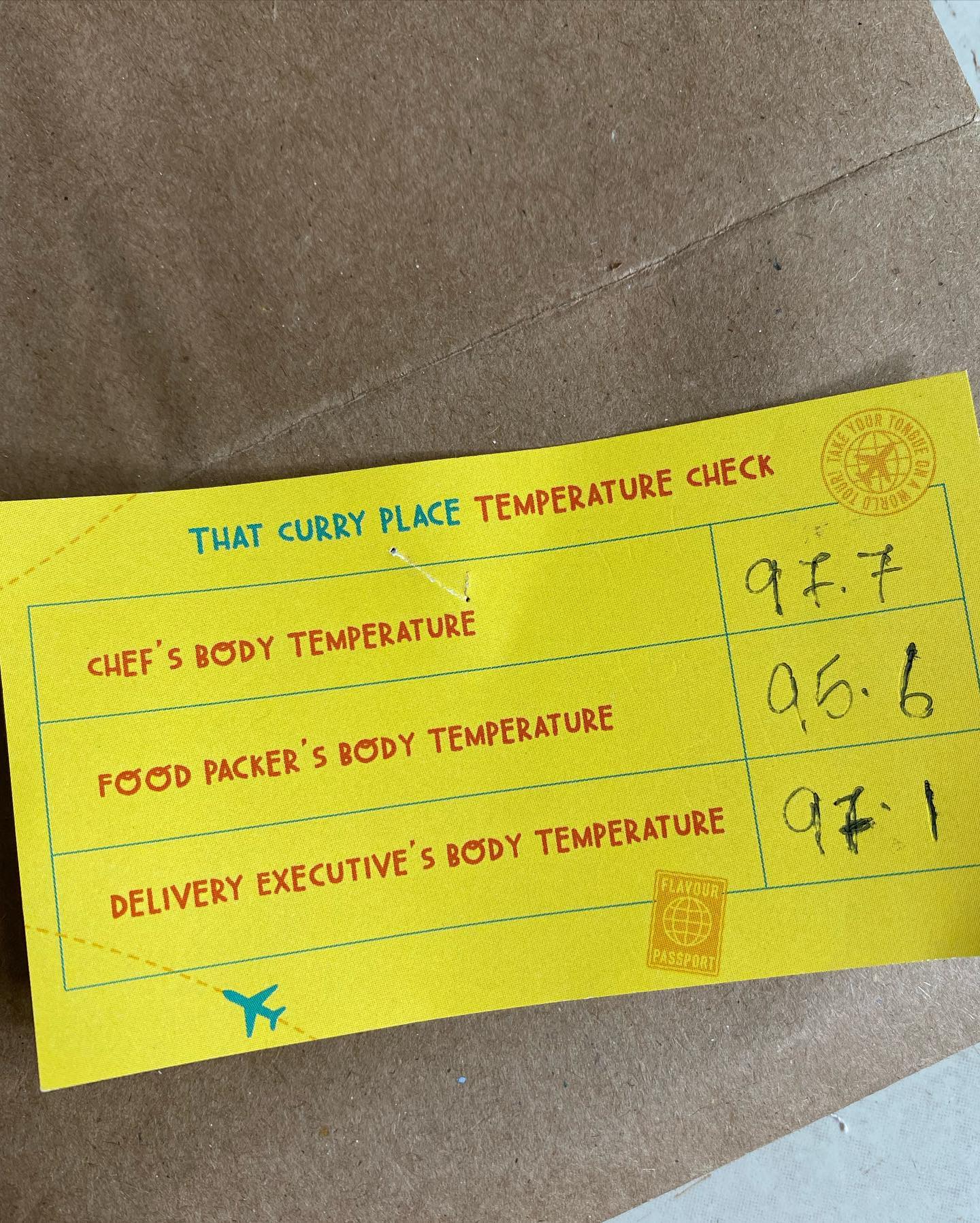 衛生面が徹底されており、他の配達業者に頼まず、インハウスのスタッフが届けているところにも安心感がある。調理担当者、パッケージ担当者、配達担当者の体温を記入したメモまで添えられている。