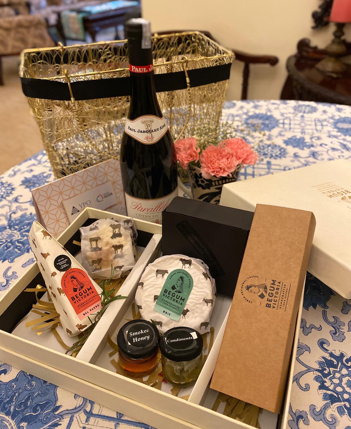 贈り物が届く季節。友人が経営するBegum Victoriaの美味アルチザンチーズ。数年前に、バンガロールに工房を開いている。赤ワインと合いそうだ。