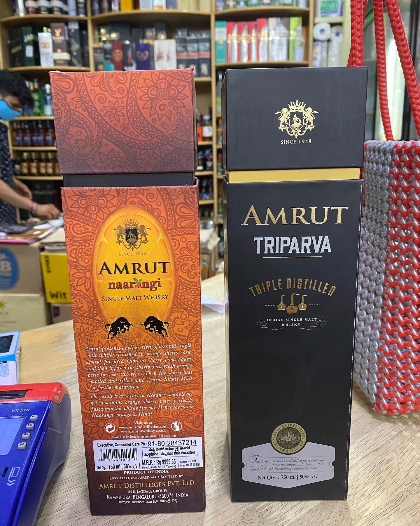 実は先日、バンガロールの老舗超便利商店トムズ・ベーカリーのアルコールショップへ行き、AMRUT FUSIONを買おうとしたら、店のお兄さんが「これもお勧めですぜ!」と2つの箱を取り出してきた。