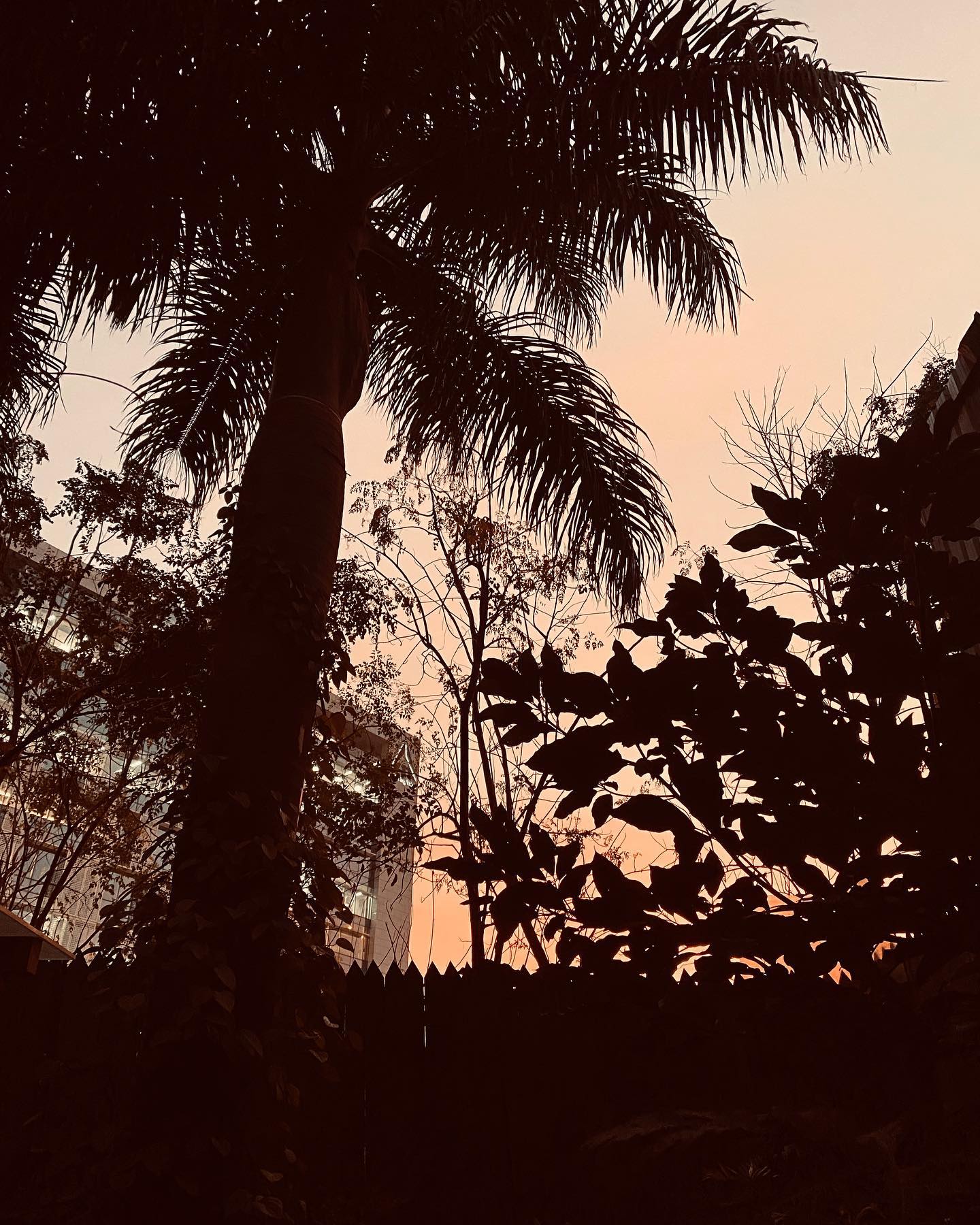 思えばこのヤシの木も、2007年に引っ越してきたときには、わたしの背丈ほどしかなく、わたしの「太もも」くらいの「細さ」だったのだ。自然の姿の変遷に、歳月の流れが偲ばれる。