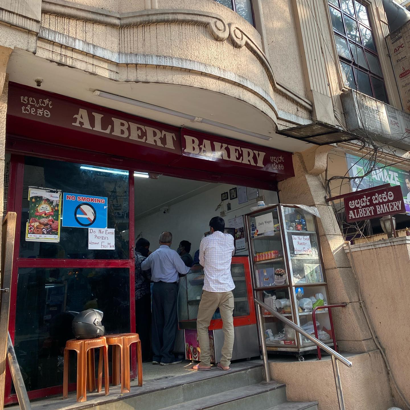 昨日、工芸品フェアへ赴いた帰路、2、3年ぶりにモスクロードにあるALBERT BAKERYに立ち寄った。創業1902年の老舗ベーカリー。パンだけでなく、サモサやフライドチキン、パフ類などのスナック、焼き菓子、ケーキ、インド菓子なども揃う店。