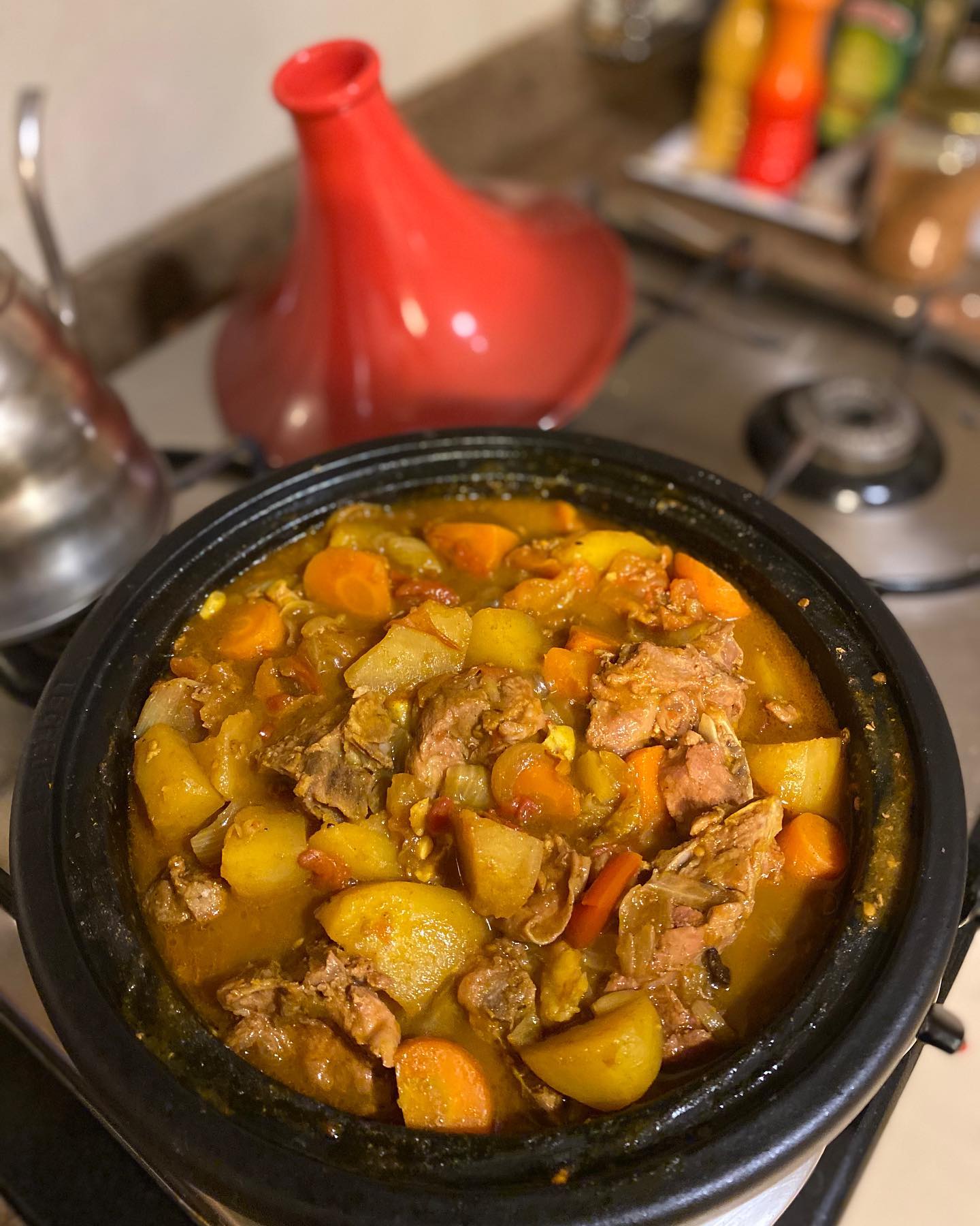 10年ほど前から化学調味料アレルギーとなり、徐々に日本の加工食品が食べられなくなった。大好きな豚骨ラーメンも、日本的なカレーライスも。ゆえに、インドの新鮮な各種スパイスやオーガニック野菜を使って「一から作る」のが上達。これは骨つきマトンを煮込んだカレー。とろみはつけなかったものの、味は日本風。
