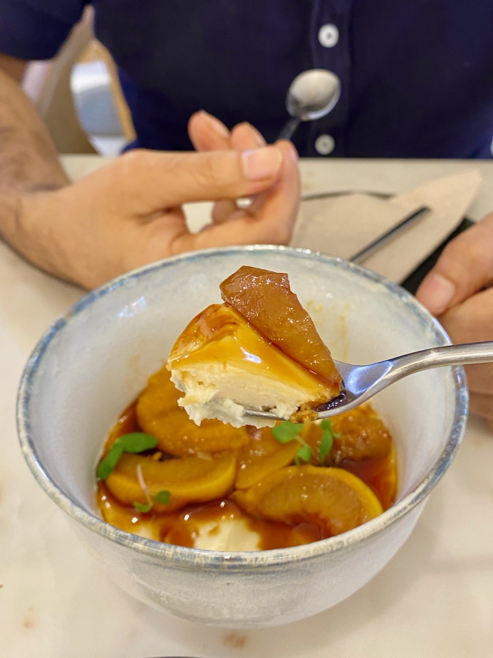 毎度、幸せな微笑みで夫が持っているのは、丼物ではない。桃と濃厚クリーミーヨーグルト(チーズケーキ風)のデザートだ。
