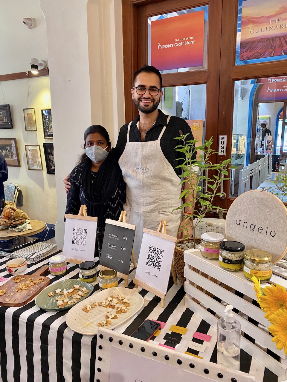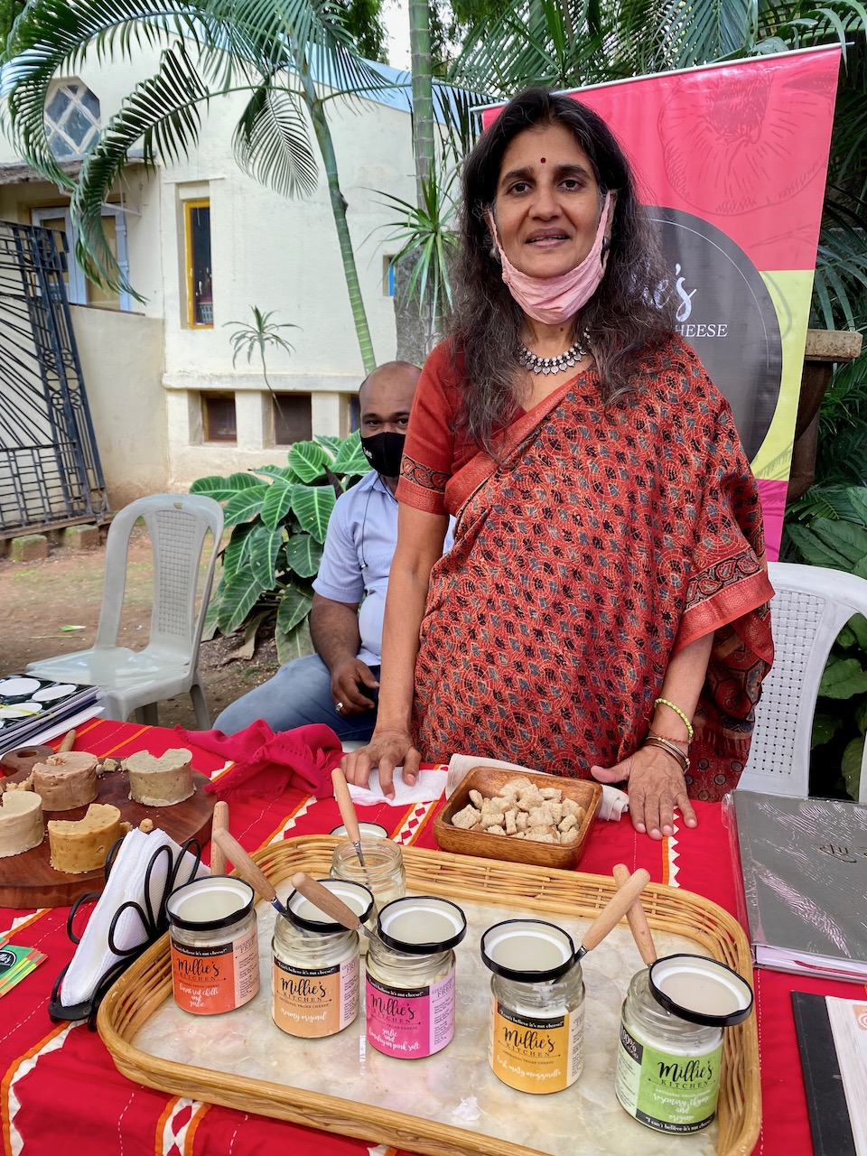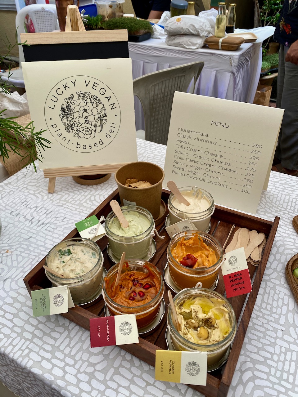 シンプルに3種類だけのヴィーガン・チーズを販売。オーナーの彼、アディティヤは、アーティストだが、昨年のロックダウンで仕事が減ったことから、自分のそれまでのヴィーガンとしての経験を生かして、ビジネスに踏み切ったとのこと。味見をしたが、いずれもコクのある上品なおいしさ! この日、2種類を購入した。