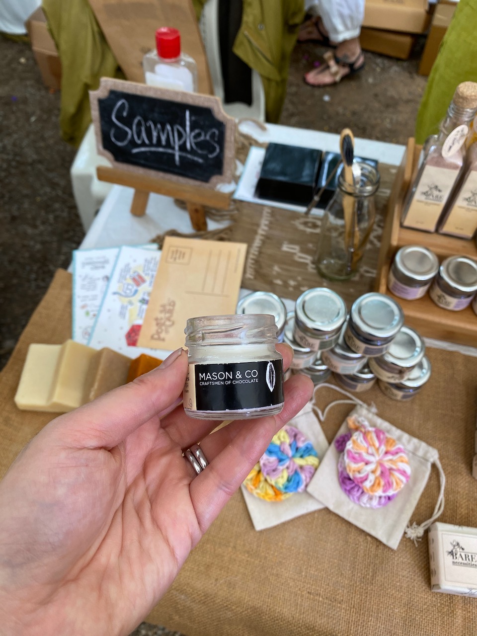 ヴィーガンとは関係ないが、出店されていたメンズ・ブランドのブティックに立ち寄る。夫の誕生日プレゼントを見つけられてよかった! ちなみに彼が創始者かつデザイナー。近々女性向けも販売開始するそうだ。ファッショナブルなクルタがあれこれと。おすすめ。