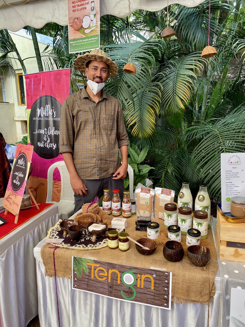 バンガロールでアートギャラリーやヘルシーフードの会社を経営する友人のナムが、先週の金曜土曜と開かれたヴィーガン・マーケットの店選びに関わっているとのこと、Facebookの投稿で知った。普段はあまり口にしないヴィーガン食品のマーケットということで、興味津々で訪れたのだった。