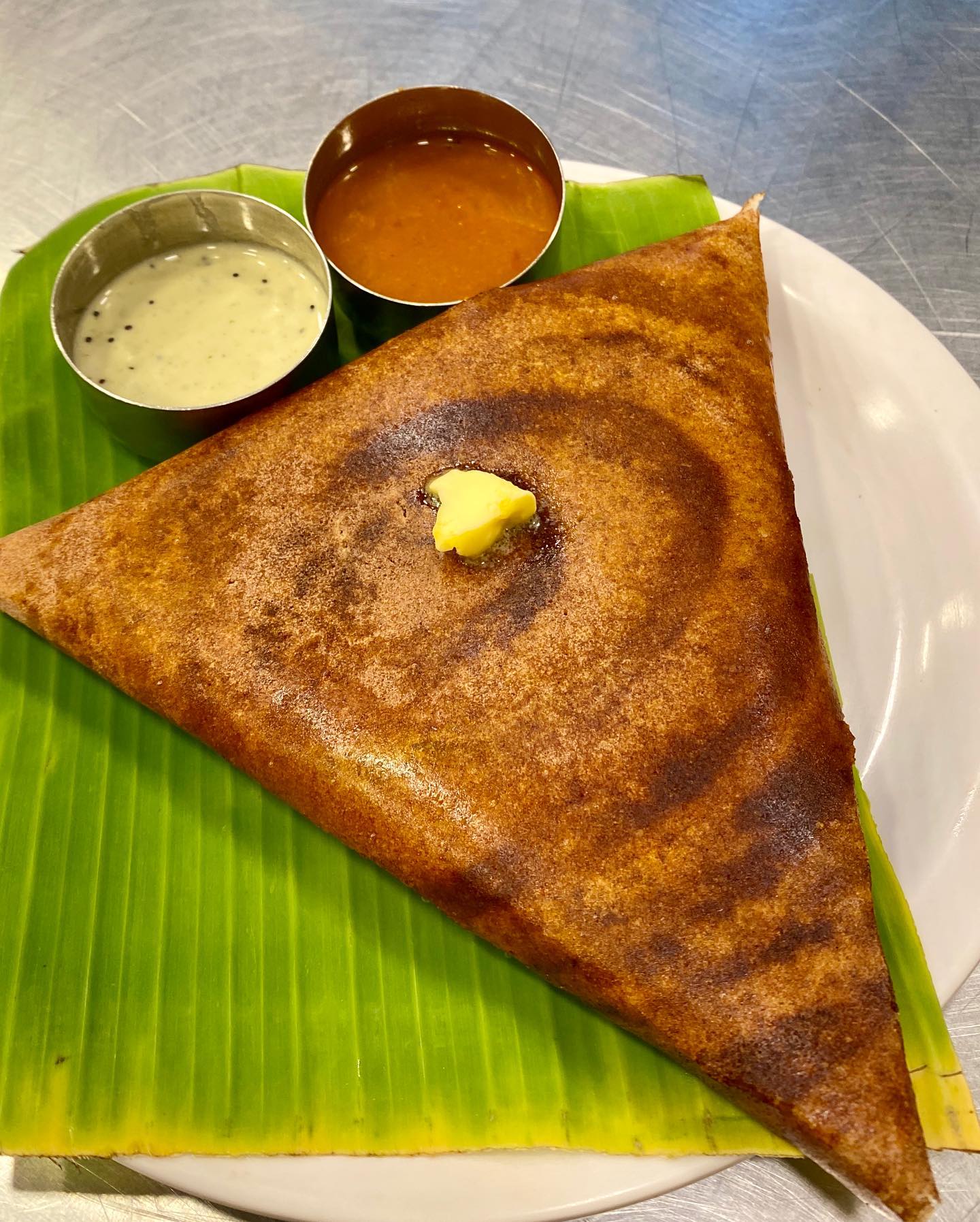 Google Mapのおかげで、界隈の「高評価」の店をすぐに探し出せる。大通りを外れ、昔ながらのコテコテな映画館の横を通り過ぎ、込み入った街路を通過して、たどりついたその店。おすすめのバター・マサラ・ドーサにはじまり、ワダを2種類、そしてサウスインディアン・コーヒーを注文(←食べ過ぎ)。