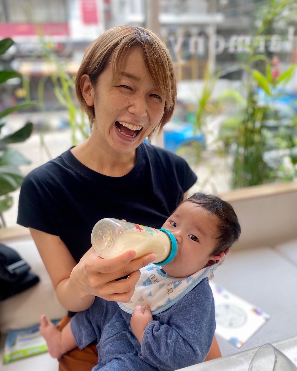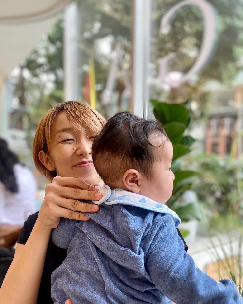 4カ月前、インドで生まれたベイビーは、わたしとペアルック状態。ずっとニコニコしていて、わたしを見つめてくれる😁 かわいすぎる。