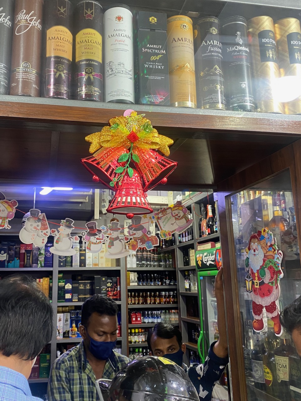◉店内には生鮮食品や乳製品、加工食品、各種調味料に日用消費財とあらゆるものが揃っている。リカーショップも併設されており、新銘柄のアルコールは大抵入手できる。売れ筋の商品については、店のお兄さんに聞くと的確に教えてもらえる。リカーコーナーはパンデミックの間に改築されてきれいになった。AMRUTのシングルモルトFUSIONやワイン、ビールなどを調達する。外には果物店もあるなど本当にコンビニエンス。