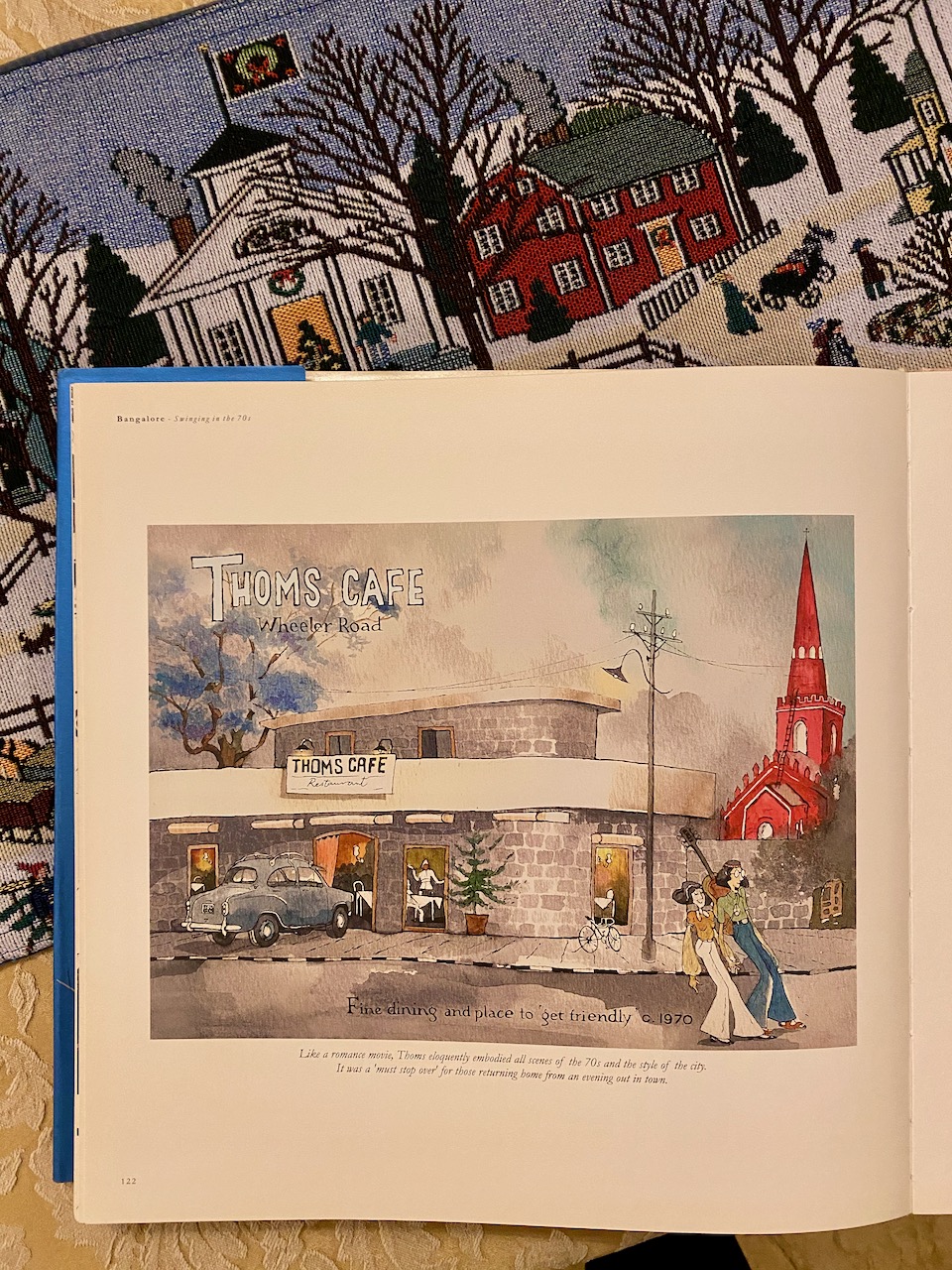 ◉バンガロール在住、クリスチャンの画家、ポール・フェルナンデス氏の本に描かれた1970年代のトムズ。パンタロン姿の男女が、時代を映している。我が家の近所には、彼のショップ&小さなミュージアムがあり、バンガロール土産に好適な絵画やグッズもある。以下の記録は、彼の講演を聞きに行ったときのもの。