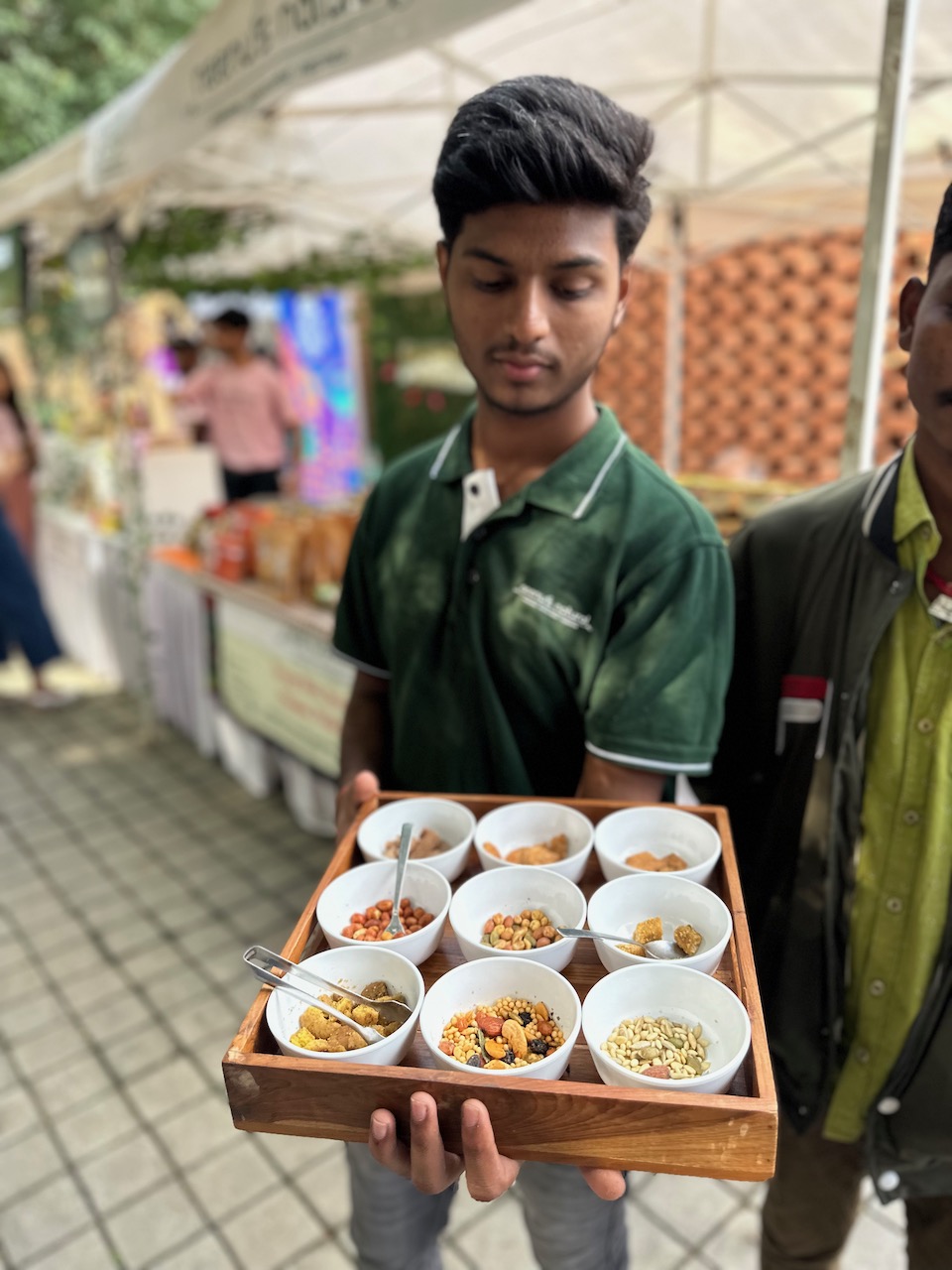 わたしにとって3度目となる今回の開催場所は、新居に程近い北バンガロールのヤラハンカ。先週の曇天とは裏腹に、夢のような青空が広がる今日、夫と二人で赴いた。試食したり、試飲したり、ランチを食べたり、試着したり、肌に塗ったり、香ってみたり……。