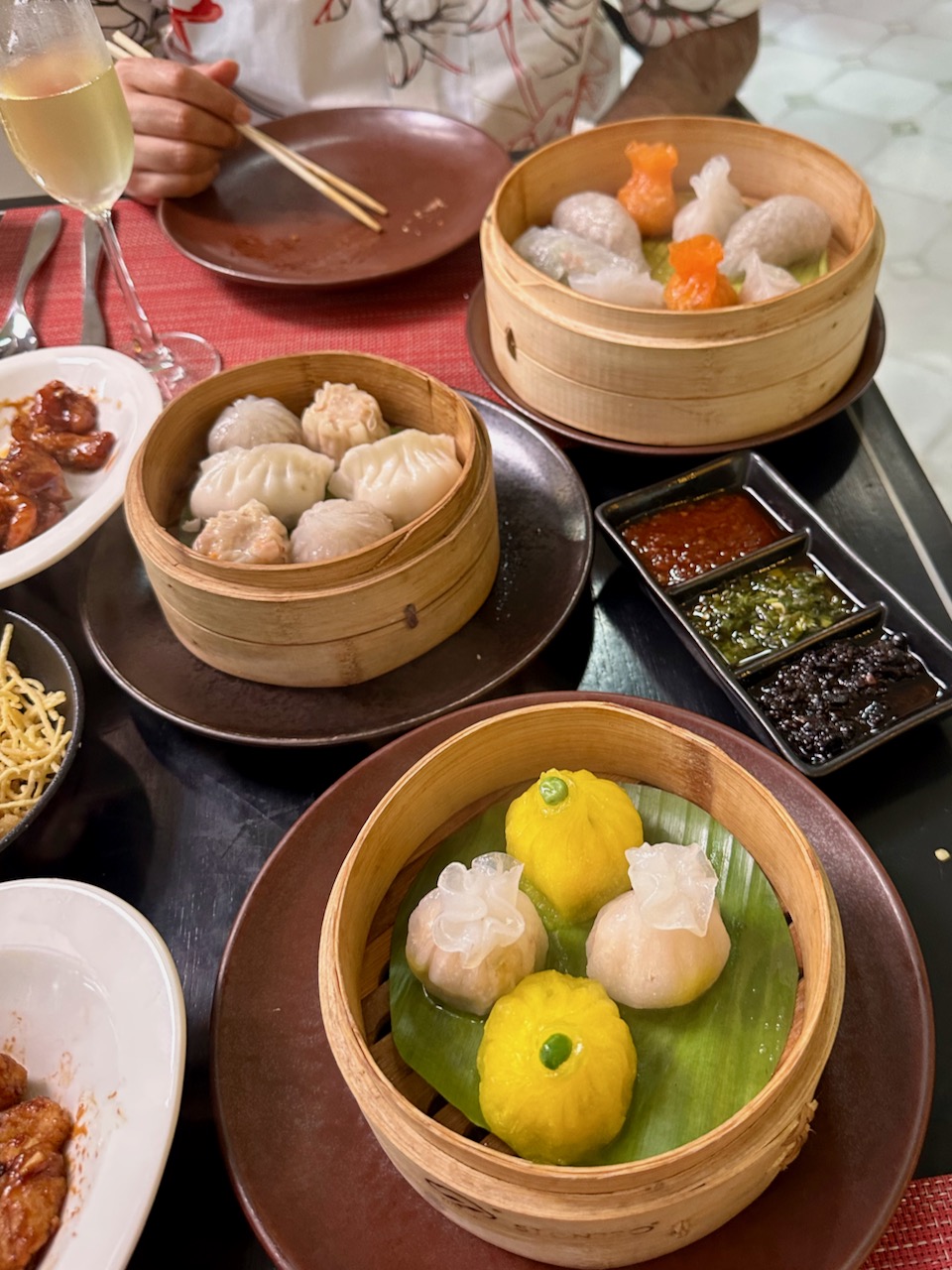 チャイニーズの前菜や点心のほか、写真に撮っていないスープや、メインのタイ風カレーなどもあり。食後は部屋で爆睡し、夕飯は不要。なんともデカダンな午後であった。