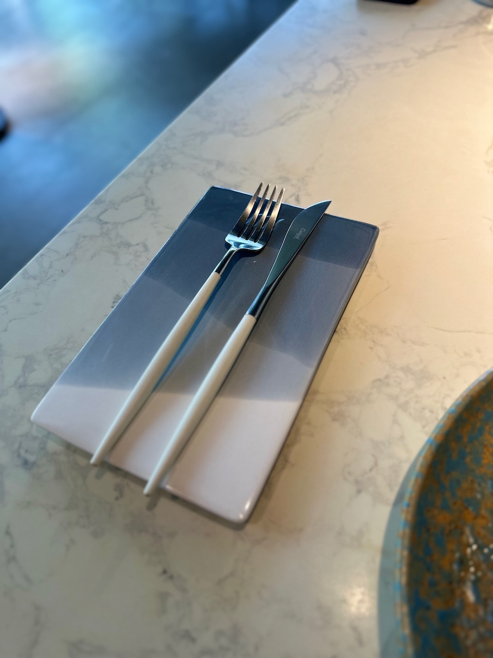 指になじんで、使い心地がとてもいい、細くて繊細なポルトガル製のハンドメイドによるカトラリー。スパークリングワインをやさしく受け止めるフランス製のグラス……。