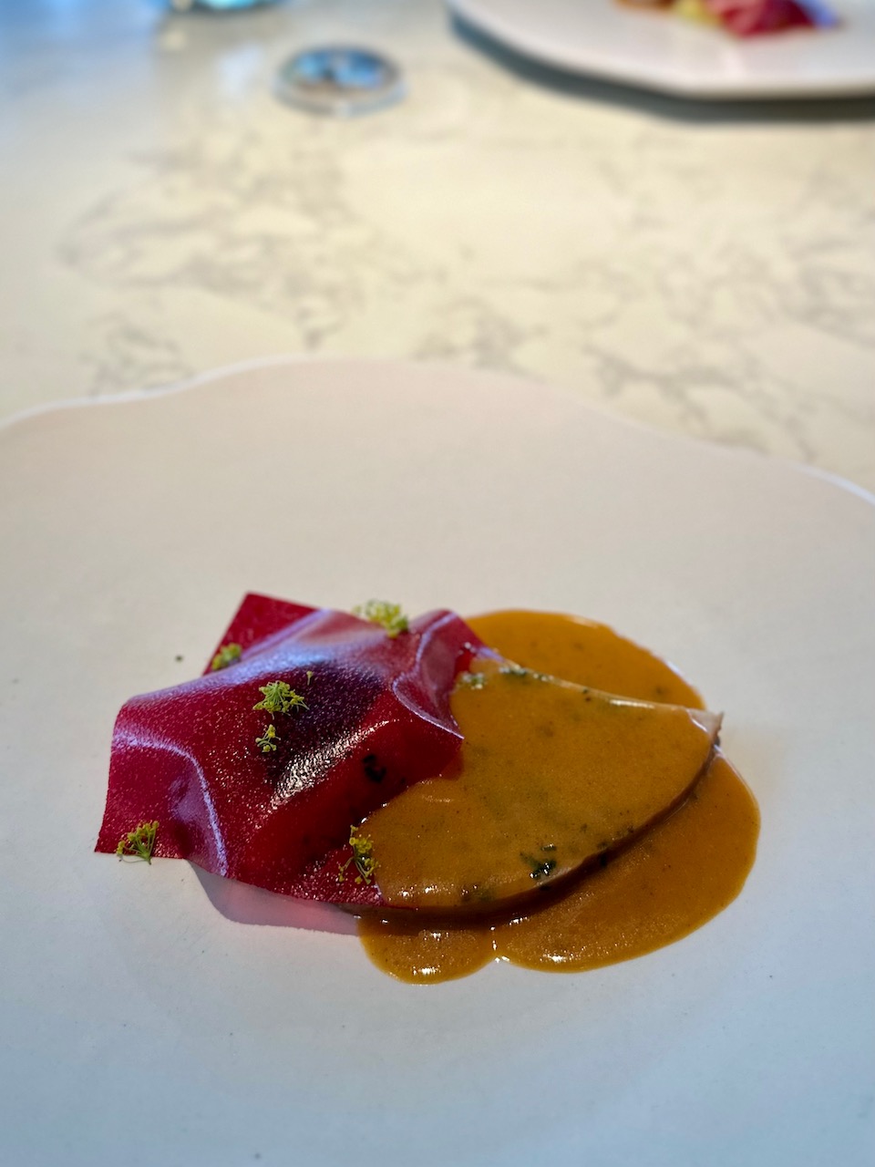前回は5コースのランチメニューを楽しんだが、今日は10コース。今月はクリスマスを意識した内容ということもあり、前回よりはインド的な香りが抑えられ、欧州のクリスマスを彷彿とさせるフレイヴァーが、随所に鏤められていた。